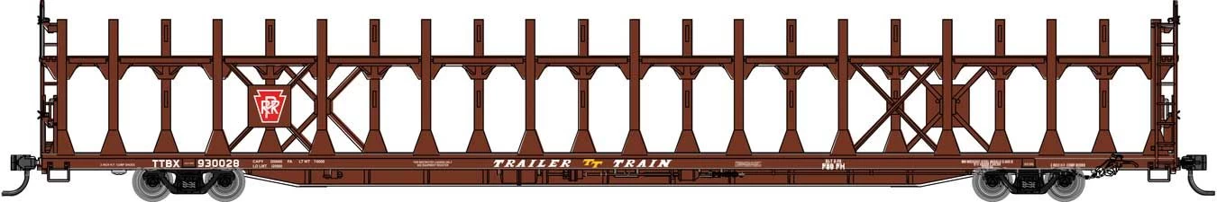 Walthers Mainline HO 89ft Bi-Level Open Auto Rack, Pennsylvania Rack, TTBX Flatcar #930028